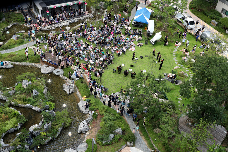 | ▲작년 9월, 철산센트럴 푸르지오에서 진행되었던 발코니 음악회<자료제공=대우건설> |
