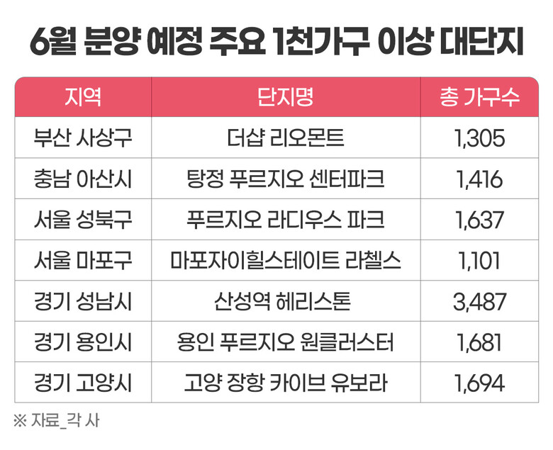 한 업계관계자는 “1천가구 이상 대단지는 상대적으로 당첨 확률이 높다는 인식이 있어 실거주 수요와 투자수요 모두가 청약에 관심을 두는 상품”이라며 “분양가 추가 상승 전 움직임을 가져가려는 수요자들이 이달 대거 예정된 1천가구 이상 대단지를 눈 여겨 볼 가능성이 상당이 크다”고 말했다.