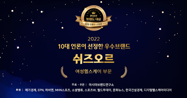 아시아브랜드연구소는 중년여성전문솔루션 쉬즈오르가 국내 10대 언론이 뽑는 '대한민국 브랜드대상'에서 '2022 여성헬스케어' 부문 우수 브랜드로 선정됐다고 19일 밝혔다.