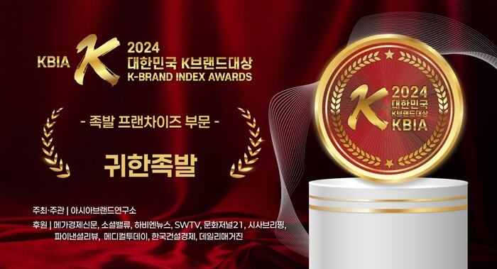 한편 귀한족발은 이번 수상을 통해 브랜드 가치와 소비자 만족도를 비롯해 브랜드 신뢰도, 브랜드 경쟁력 등이 향상될 것으로 예상된다.