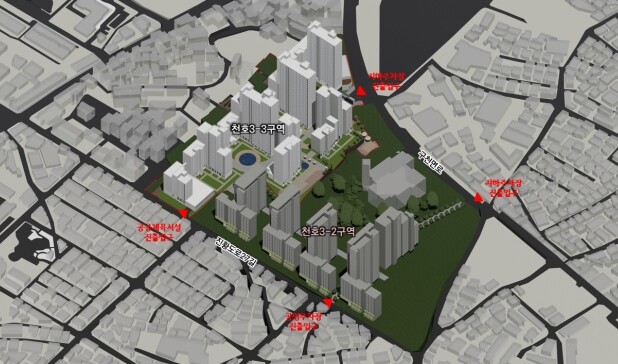 이 계획안은 천호3-3구역 현재 2종 일반주거지역과 2종 7층일반주거지역이 혼재된 이 일대를 2종 일반주거지역으로 통일해 기준용적률 190% 적용에 소형주택 확보와 공공기여 등에 따른 인센티브를 추가해 용적률 230% 적용하는 내용을 담았다.