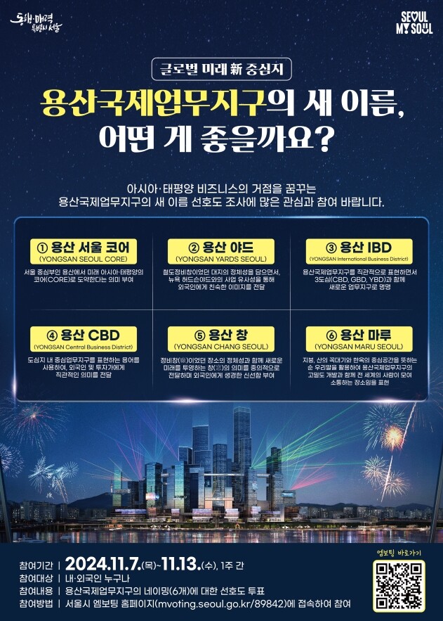 | ▲용산국제업무지구 브랜드 선정을 위한 선호도 조사 포스터. 사진=서울시 제공 |