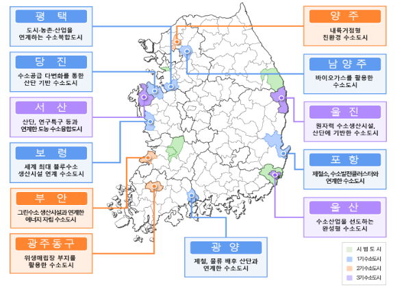 울산은 지난달 25일, 안산은 같은달 29일 수소시범도시조성사업 준공식을 각각 개최했고, 전주·완주도 올해 내 사업을 완료할 예정이다. 이러한 수소시범도시사업을 토대로 마련한 내용들을 통해 작년부터는 수소도시 본사업을 추진하고 있으며, 2023년 6곳, 2024년 3곳, 내년 정부 예산안에 담긴 3곳까지 총 12개 지역에서 수소도시 사업을 추진 중이다.