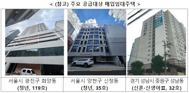 이번에 공급하는 물량은 ▲청년 매입임대주택 1590가구(수도권 875가구·그외 지역 715가구) ▲신혼·신생아 매입임대주택 1521가구(수도권 745가구·그외 지역 776가구) 등이다.