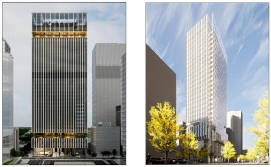 | ▲화재보험협회 건물(왼쪽)과 키움파이낸스스퀘어 건물 개발 후 조감도. (서울시 제공) |