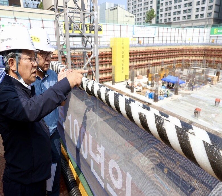 | ▲김헌동 SH공사 사장이 마곡 건설공사 현장의 진행 상황을 살피는 모습. 사진=SH공사 제공 |