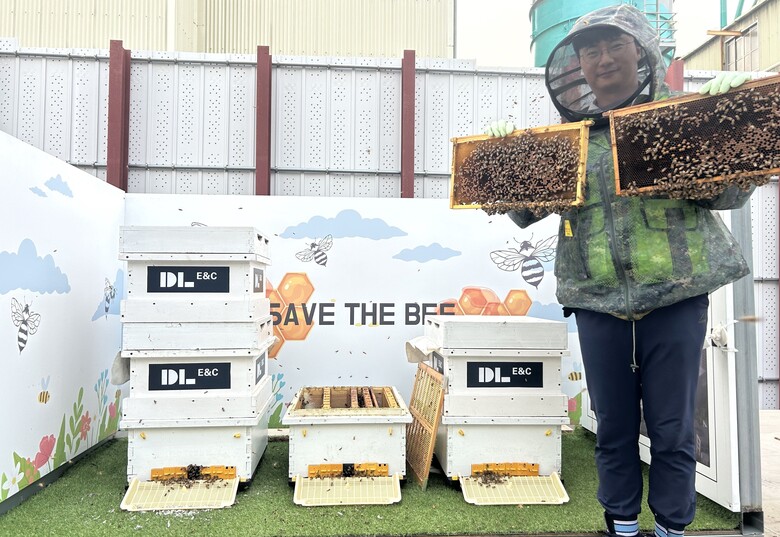 DL이앤씨는 꿀벌 생태계 회복 활동에 동참하기 위해 지난 5월 수도권의 한 공사 현장에 도심 양봉장을 조성하고 운영에 들어갔다. 현장 직원들은 양봉용 모자와 작업복을 착용하고 벌통 내 소비장(벌집)을 주기적으로 점검했다. 벌통에 진드기가 생기는 것을 막기 위해 일일이 약제를 뿌리는 것은 물론, CCTV를 지켜보다 말벌이 나타나면 달려가 잡는 등 정성을 들여 관리했다.