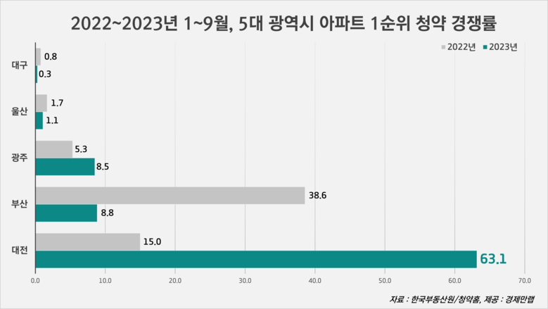 올해 1~9월, 대전 아파트 청약경쟁률 63대 1 기록