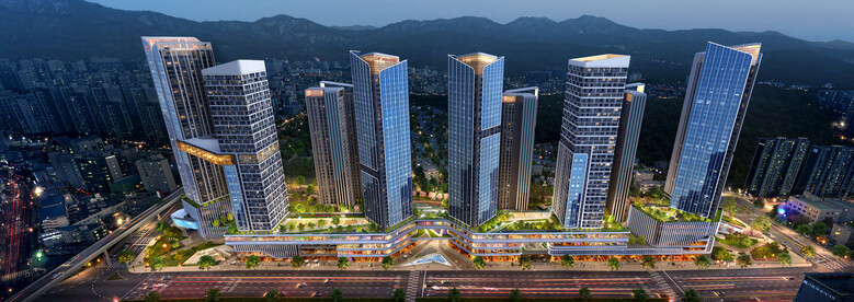 이 단지는 성남 상업지역에서 유일하게 고도제한 완화구역으로 지정된 중2구역에 위치해 최고 층수 42층을 확보한 만큼 성남 최고 높이인 193m 랜드마크로 탈바꿈한다. 세대조망을 강화한 특화설계를 적용해 다양한 조망 프리미엄을 누릴 수 있도록 세대를 배치했다.