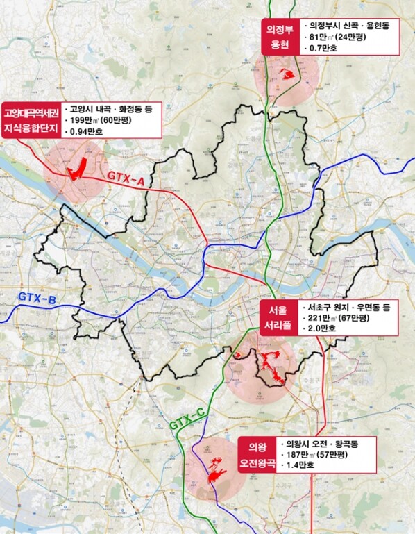 [한국건설경제뉴스=이보미 기자] 서울 서초구 서리풀지구와 고양 대곡, 의정부 용현, 의왕 왕곡지구 등이 신규택지로 조성돼 수도권에서만 5만 가구가 공급된다.
