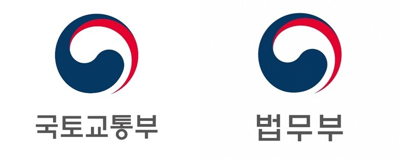 ▲국토교통부(왼쪽)와 법무부 로고. 사진=각 기관 제공