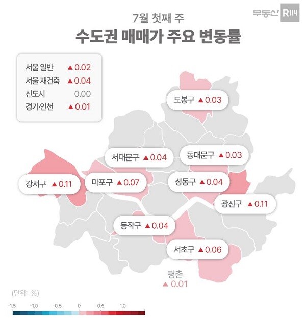 | ▲7월 첫째주 수도권 매매가 주요 변동률 / 부동산114 제공 |