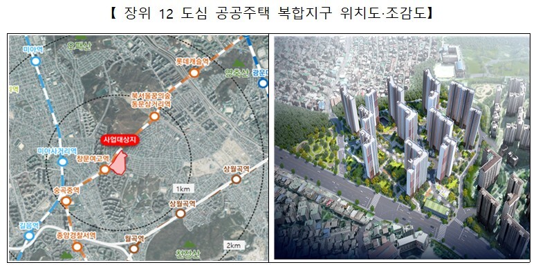 | ▲장위 12 도심 공공주택 복합지구 위치도‧조감도. 이미지=국토교통부 |