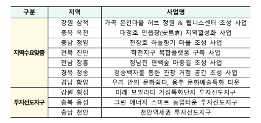 올해 지역수요맞춤지원 사업은 지역 고유자원을 창의적으로 활용하는 7건의 사업을 선정했으며 주민 삶의 질 제고 등을 위한 지역 활성화 사업을 지원(최대 25억원)한다.