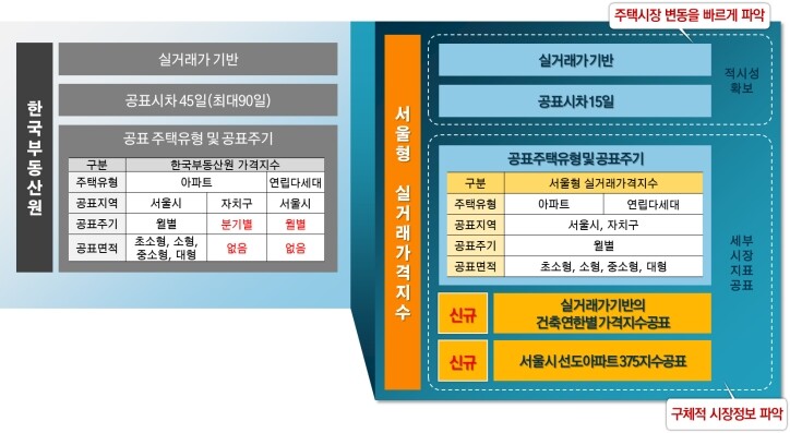 이에 시는 기존 시세를 기반으로 하는 조사지수와 실거래가 지수의 한계를 적극 보완해 적시성을 확보하고 주택 특성과 지역적 특성을 반영한 '서울형 주택실거래가격지수'를 지난해부터 개발해왔다.