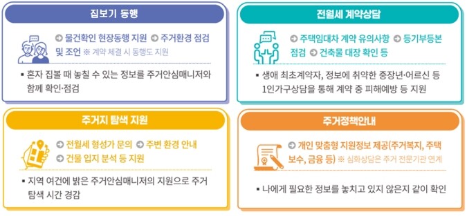 이 서비스는 서울시 주거안심매니저가 전월세 계약 상담과 집보기 동행 등을 일대일로 지원하는 사업이다. 7월 5개 자치구(성북·서대문·관악·송파·중구)에서 시작해 현재 14개 자치구에서 운영 중이다.