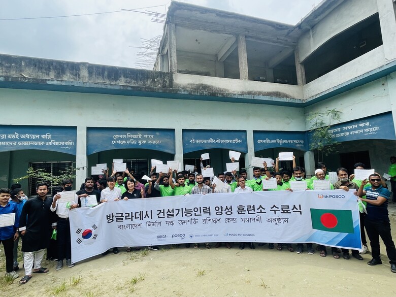 포스코건설은 2021년 7월부터 건설기능인력 양성 교육을 통해방글라데시 건설현장 인근지역의 실업문제 해소에 기여하고 더불어 양질의 건설현장 인력 확보라는 두가지 문제를 동시에 해결하게됐다.