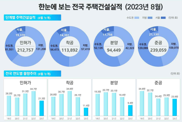 | ▲2023년 8월 누계 기준 전국 주택건설실적. 그래픽=국토부 제공 |