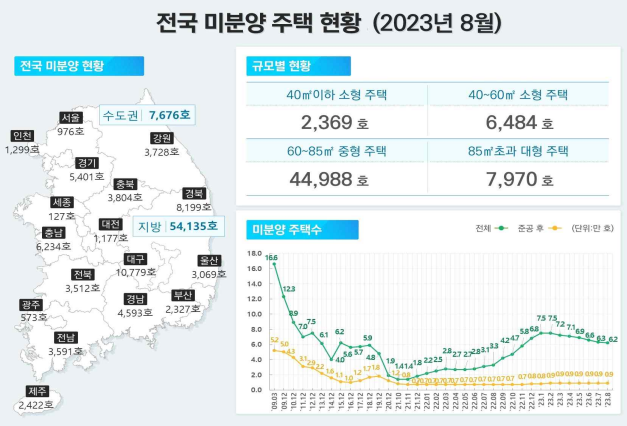 | ▲2023년 8월 전국 미분양주택 현황. 그래픽=국토부 제공 |