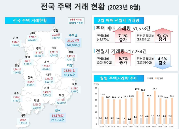 | ▲2023년 8월 전국 주택 거래 현황. 그래픽= 국토부 제공 |