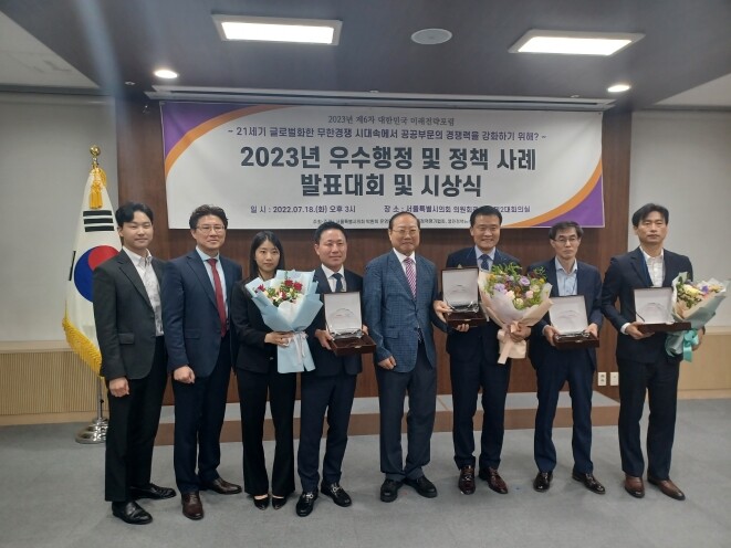 | ▲'2023 우수행정 및 정책사례 선발대회' 부문별 최우수상 수상기관 기념촬영 모습. 사진=SH공사 제공 |