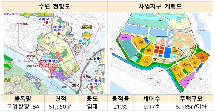 | ▲고양장항 지구 주변현황도 및 사업지구계획도. 사진=국토부 제공 |