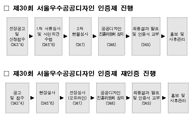 | ▲제30회 서울우수공공디자인 인증제 추진절차. 그래픽=서울시 제공 |