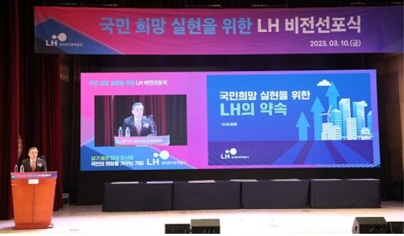 이한준 LH 사장은 "이번 선포식은 국민을 위한 LH의 새 출발과 앞으로 10년 이후 변화될 모습을 알리는 자리"라며 "오늘 발표한 국민 중심의 비전과 경영목표를 적극 실천해 LH가 국민의 희망을 가꾸는 공기업으로 우뚝 설 수 있도록 최선을 다 하겠다"고 말했다.