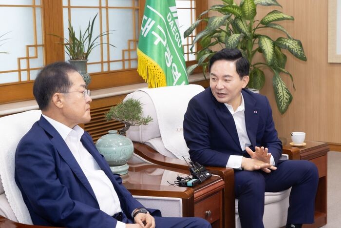 | ▲원희룡 국토교통부 장관(오른쪽)과 홍준표 대구시장을 회동 모습. 사진=국토부 제공 |