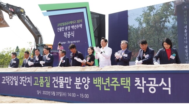 서울시는 서울주택도시공사(SH공사)와 31일 오후 강동구 고덕강일3 시공현장에서 민선8기 첫 토지임대부 분양주택인 '고덕강일 공공주택지구 3단지' 착공식을 열었다고 밝혔다.