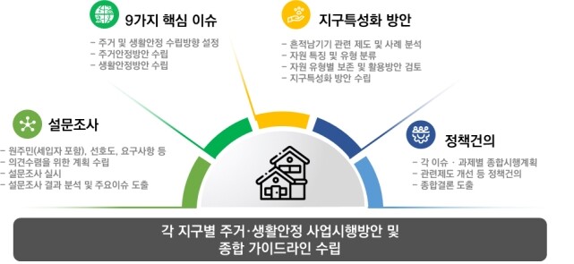 연구는 △지구현황 분석 △원주민 설문조사 △주거 및 생활안정방안 및 지구특성화 방안을 주로 하며, 연구 과정에서 도출되는 관련 제도 등 정책 건의도 함께 이뤄질 예정이다.