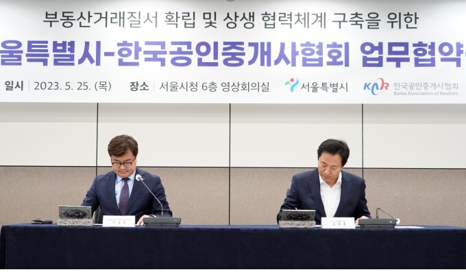 서울시는 한국공인중개사협회와 25일 오후 시청 영상회의실에서 '부동산 거래질서 확립 및 상생협력 체계를 위한 업무협약'을 체결했다고 밝혔다.