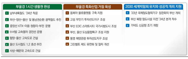 | ▲부·울·경(부산‧울산‧경남) 지역 동반성장을 위한 3대 추진전략. 사진=국토부 제공 |