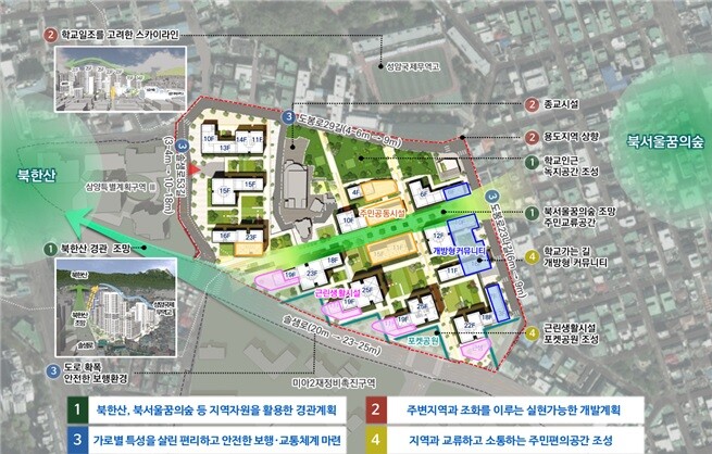 | ▲미아동 345-1 일대의 신속통합기획 계획원칙 및 구상 / 이미지=서울시 |