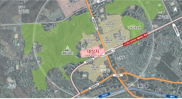 [한국건설경제뉴스=이병훈 기자] 매봉산 자락과 오류IC.남부순환로 등에 접한 교통의 요충지 ‘개봉동 49번지 일대’가 노후 저층주거지에서 35층 내외, 1,360여 세대 아파트 단지로 다시 태어난다. 향후 예정돼 있는 ‘신구로선’이 개통되면 ‘신(新)개봉 생활권’의 중심단지로 거듭날 것으로 기대된다.