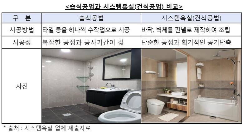 시스템 욕실(Unit Bathroom, UBR)이란 욕실공사의 공정을 단순, 표준화시킨 건식공법으로, 기존 습식공법 대비 방수기능이 향상되고 시공속도가 빨라서 아파트, 호텔, 오피스텔 등 다양한 건축물에 적용되고 있다.