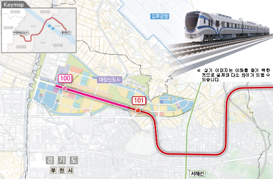 '대장~홍대선'은 경기 부천시 대장 신도시와 서울 마포구 홍대입구역을 잇는 광역철도로 2·5·9호선 등 지하철 주요 노선 환승이 가능하다.