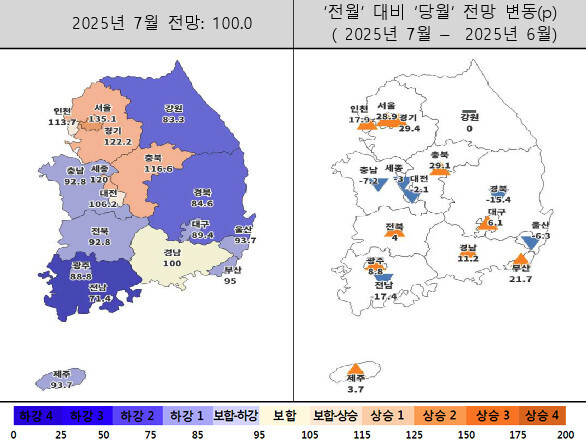 한편, 7월 전국 자금 조달 지수는 12.5포인트 상승한 92.8, 자재 수급 지수는 2.1포인트 오른 100.0으로 집계됐다.