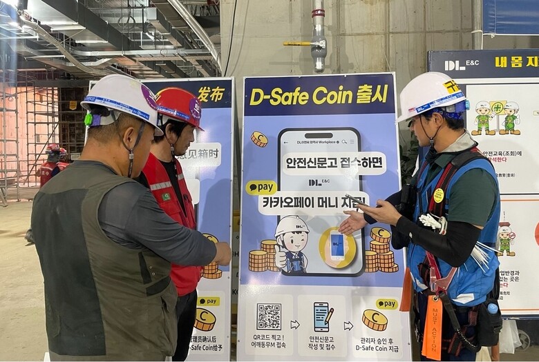[한국건설경제뉴스=최대식 기자] DL이앤씨는 근로자가 안전 활동에 대한 보상을 즉각적으로 체감할 수 있도록 ‘D-세이프코인(D-Safe Coin)’ 제도를 도입한다고 9일 밝혔다. 안전 문화를 정착하고 동기부여를 하자는 취지다.