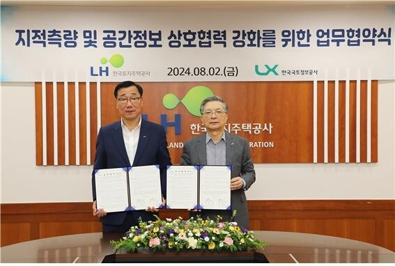 [한국건설경제뉴스=최대식 기자] 한국토지주택공사(LH)는 2일 경기 성남시 LH 경기남부지역본부에서 한국국토정보공사(이하 LX)와 지적측량과 공간정보 분야 협력 강화를 위한 업무협약을 체결했다고 밝혔다.