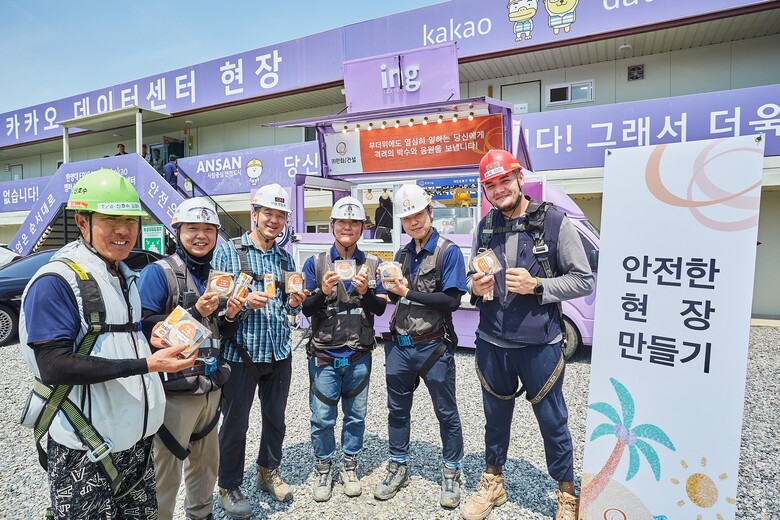 지난 24일에는 경기도 안산에 위치한 카카오데이터센터현장에 ‘아이스크림 간식차’가 방문했다. 이날 행사에는 현장소장부터 협력사 직원 등 근로자 300여명이 참여했으며, 근로자들은 현장 내 휴게공간 등에서 시원한 아이스크림과 간식을 먹으며 무더위를 식혔다.